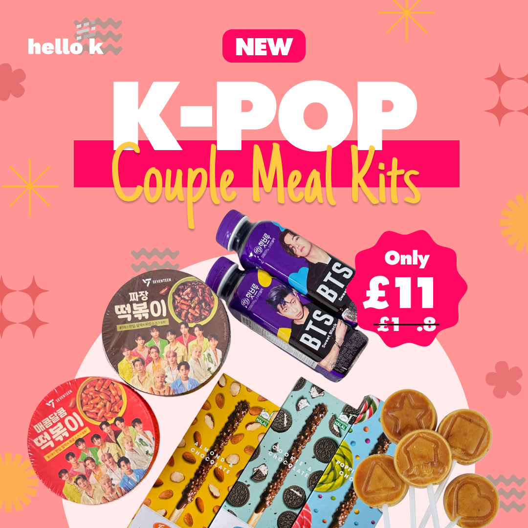 "Indulge in the ultimate K-POP culinary experience with our exclusive meal kit! For just £14, enjoy a delicious adventure featuring SEVENTEEN's spicy and sweet tteokbokki in both original and black bean sauce flavors, BTS's sweet black coffee, three varieties of choco sticks, and Squid Game's iconic dalgona lollipop candy. Perfect for K-POP fans and foodies alike, share this tasty treat with friends or your special someone. Elevate your snacking game with a taste of K-POP!"